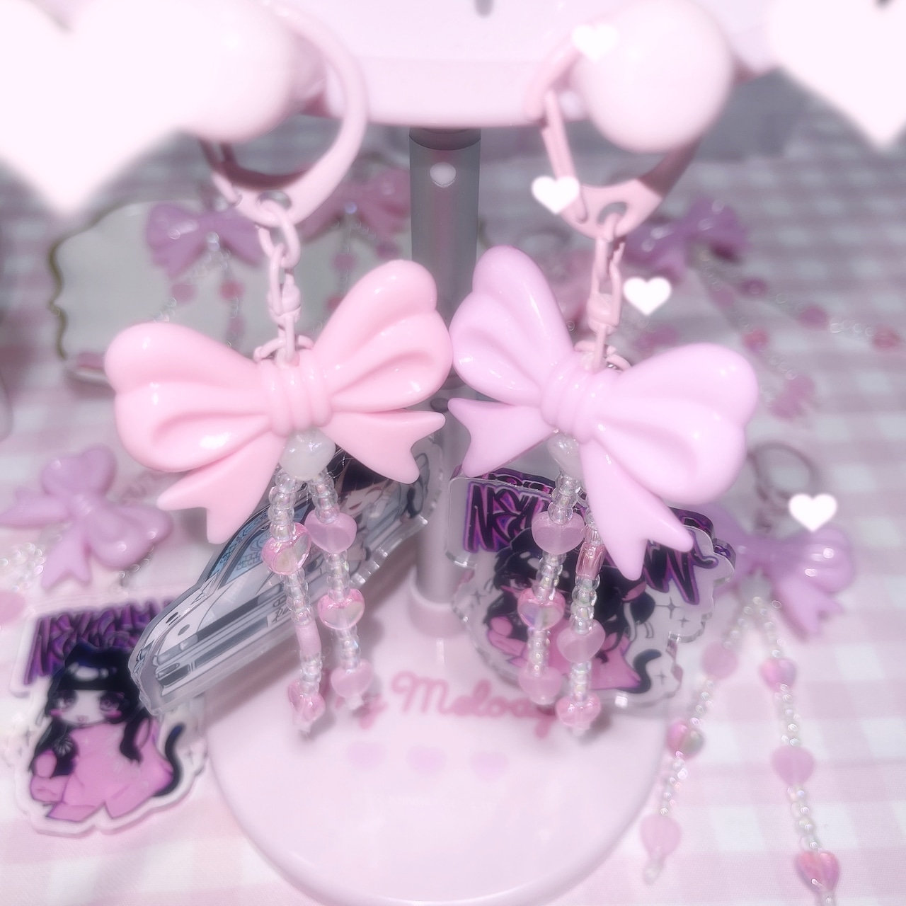 ねこ番長アクリルチャーム・.♡。*(ピンクリボンビーズ)